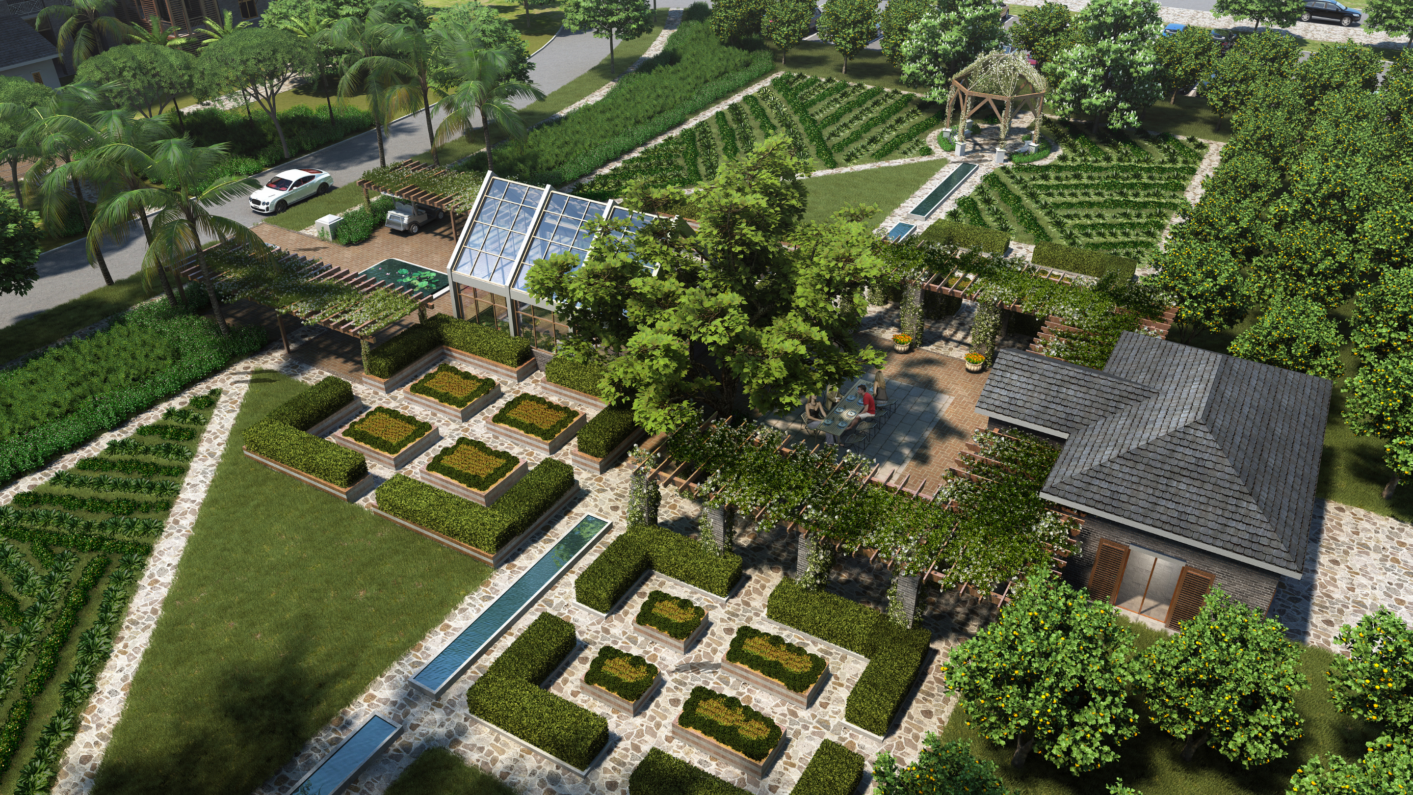 - Outdoor courtyard with gazebo